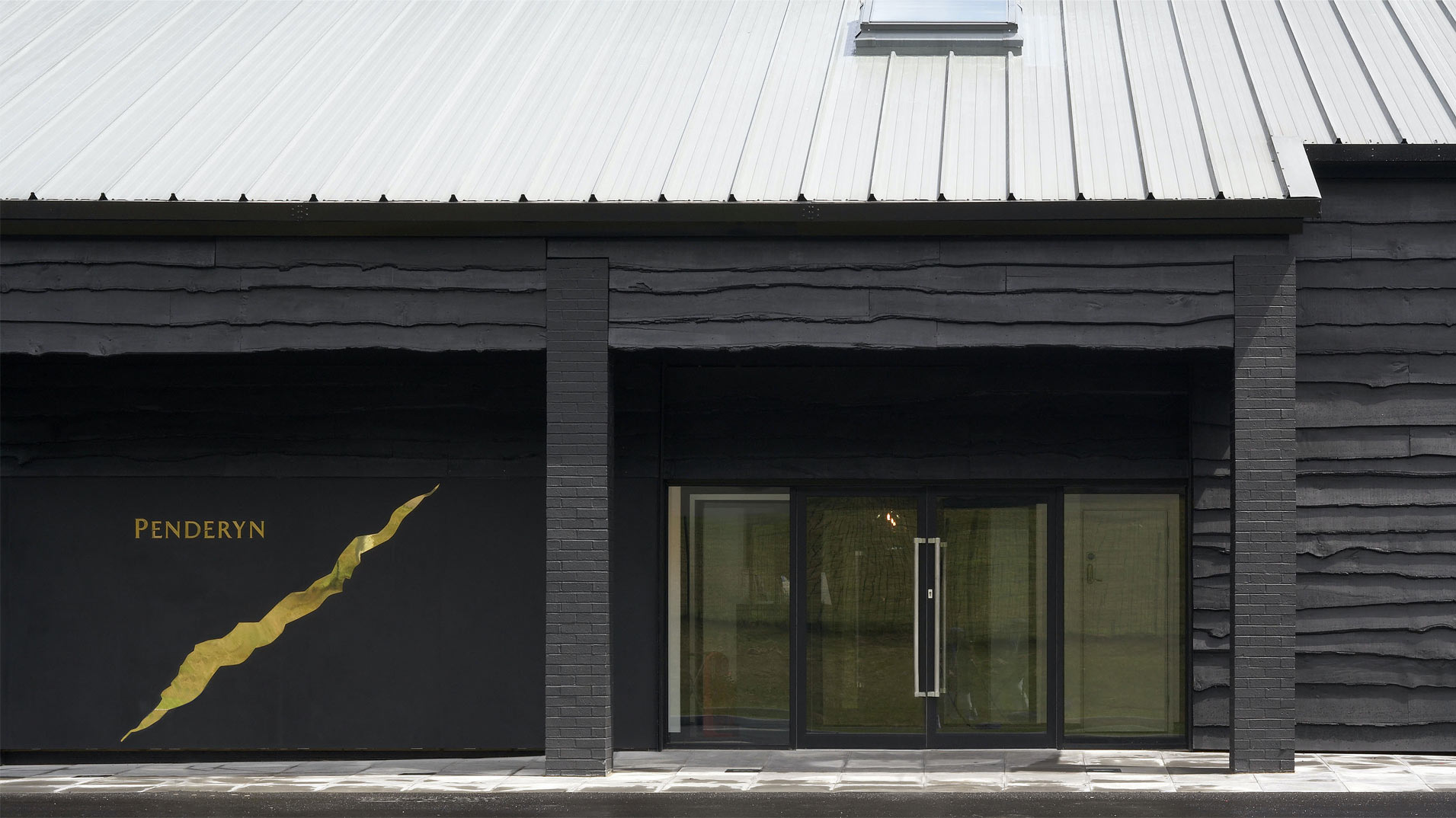 The entrance continues the bold solution and is set against a dark matt background, a visual motif directly borrowed from the whisky bottle label and replicated here in brass and slate creating a tableau vivant.A light double-height entrance lobby is the start of the atmospheric space. “A seam of Welsh gold” corresponding to the amber of the whisky, and a background colour “black as coal” persist throughout the entire project as an emblem for the interior, a mise-en-scène, connecting spaces in the same way the streams flow through the landscape around the distillery. As the exterior is timber, so the interior spaces are lined with sawn timber, with a hand painted finish for a more refined, smooth appearance.