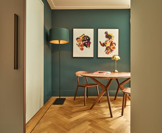 Exuding both style and substance, the design incorporates herringbone wooden floors, an Inchyra Blue and warm walnut colour palette, as well as furniture by Pols Potten, Gubi and Artisan among others. Modern floral artworks are limited editions by Amsterdam-based Dutch artist Jan Commandeur and photography that reflects the building’s history blends the old with the new. More functional features and amenities are on hand to seamlessly complement a guest’s stay.