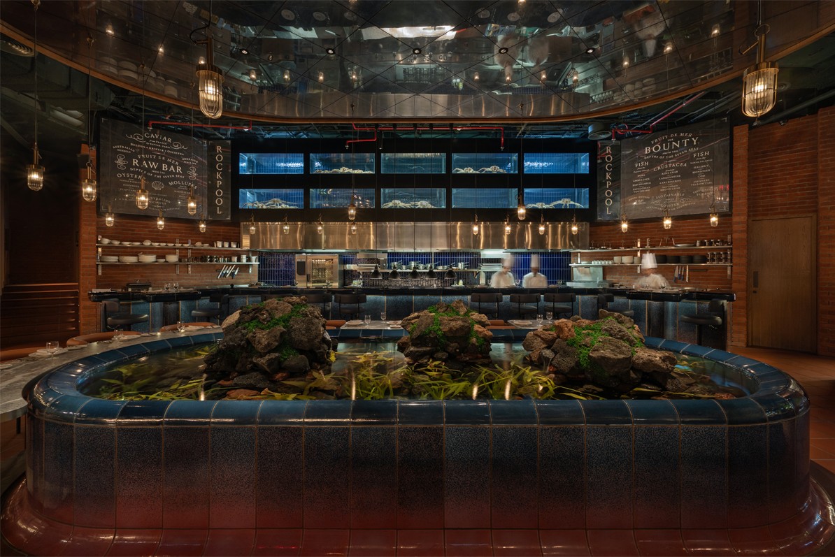 Each section has its own menu, ambiance, and service, with interior architecture defining each experience and providing a unifying identity and theatre. Social spaces sit amid avenues of trees, terracotta pathways, timber structures, a rockpool, and open fires – while tucked in cosy corners are secret garden-like intimate spaces.
